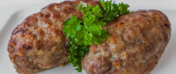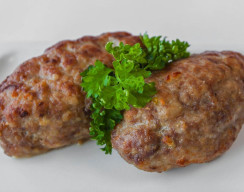 Состав: фарш говядина-курица ( говядина, курица, лук репчатый, соль, перец, хлеб), лук репчатый, соль. перец, масло подсолнечное, хлеб.