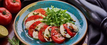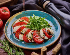 Состав: помидоры, сыр Моцарелла, соус «Песто» (масло подсолнечное, зелень (укроп, петрушка, базилик), орехи кедровые, чеснок, соль, перец черный молотый , соус-крем Бальзамик.